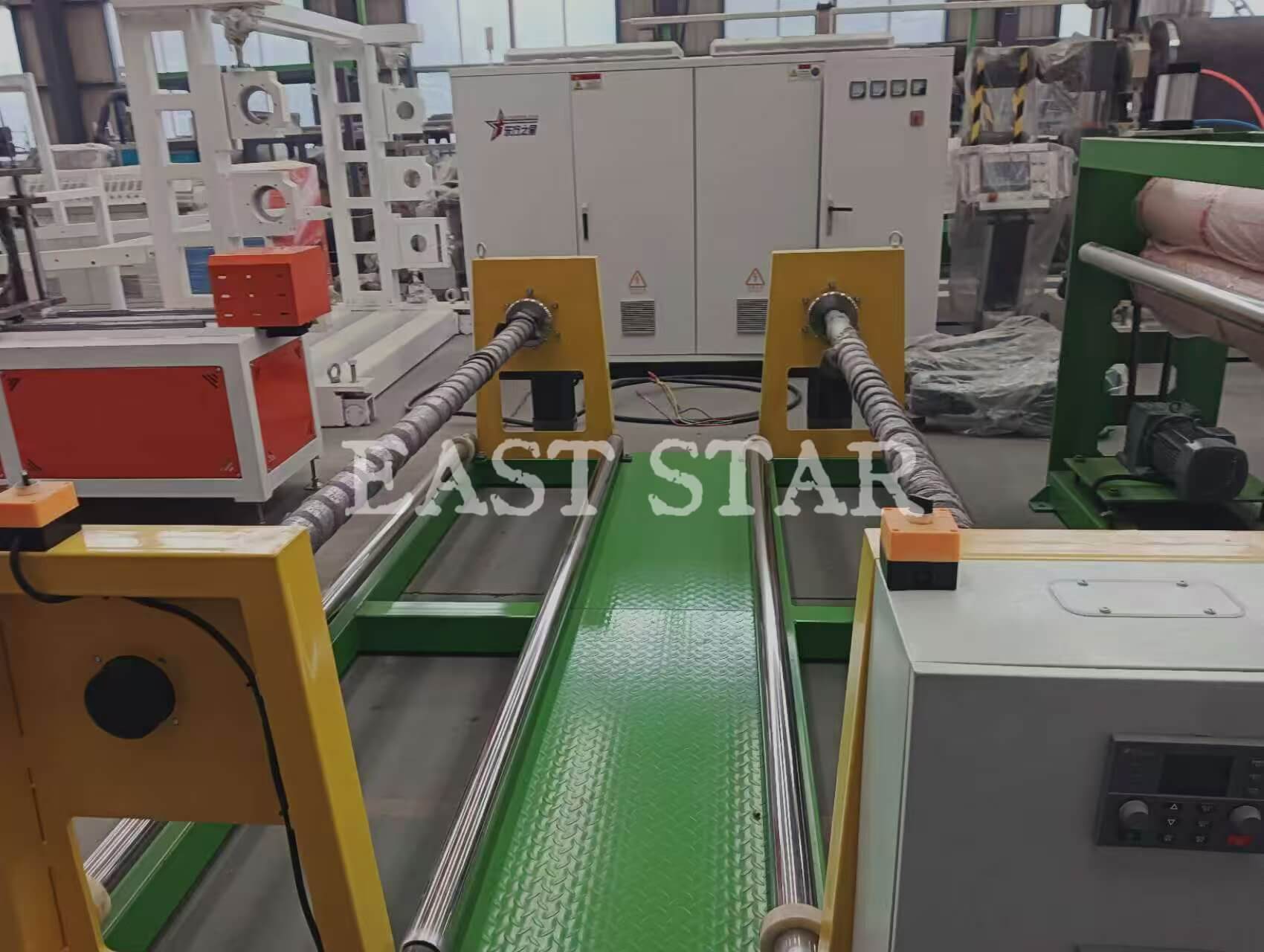 · Op- og tilbagespolingsenhed: Giver stabil trækkraft og vikler automatisk det afkølede og formede ark til en pæn spole for nem transport og efterfølgende behandling.