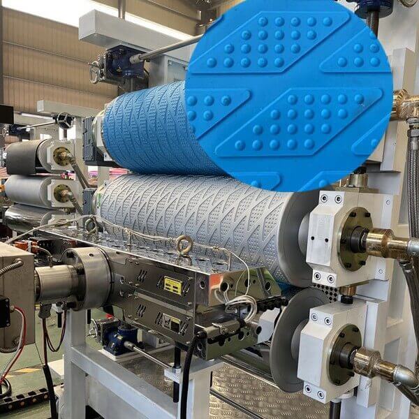 Under besøget fik kunderne et omfattende overblik over de specialiseredeekstruderingslinjerdesignet til at behandle disse alsidige materialer. Turen indeholdt live demonstrationer af enTPU anti-slip måtte produktionslinje, der viser præcisionsekstrudering, effektiv køling og præcise skæreprocesser. Kunderne viste særlig interesse for de specialdesignede skruer og tønder, der sikrer optimal plastificering og blanding til forskellige elastomerkvaliteter, hvilket fører til ensartet måttekvalitet med fremragende anti-skrid-egenskaber, holdbarhed og æstetisk appel.