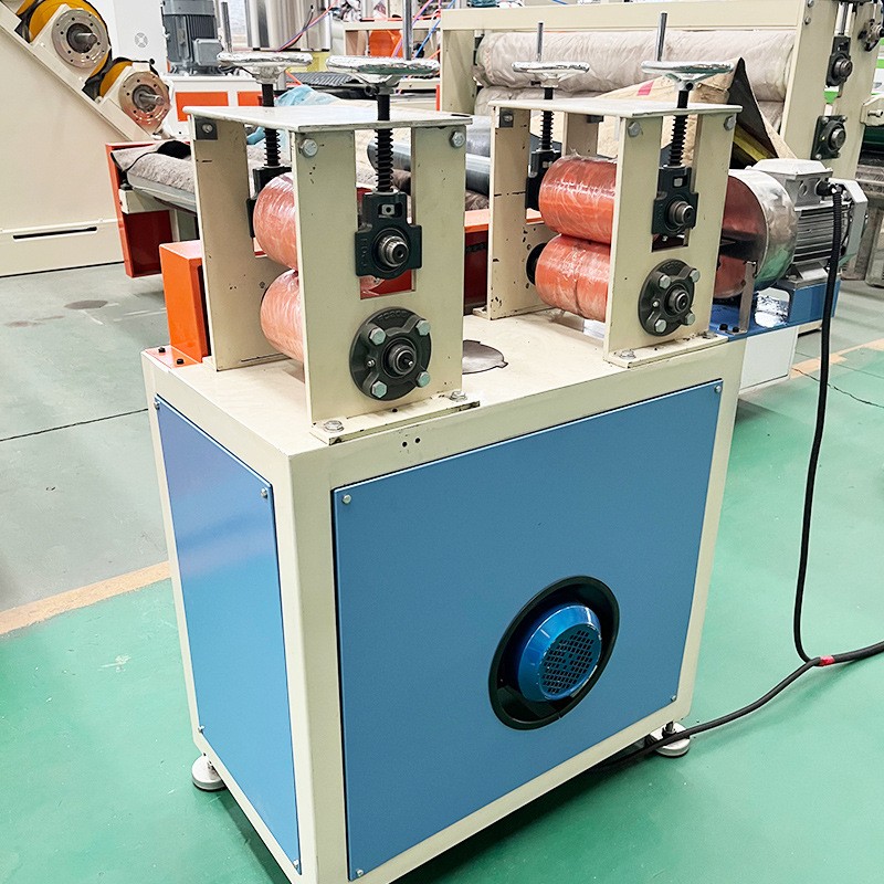 PE Bag Edge Strip Ekstrusionsmaskine inkluderer enkeltskruekompressor - maskinhovedform - vakuumformelager - traktor - opvikling