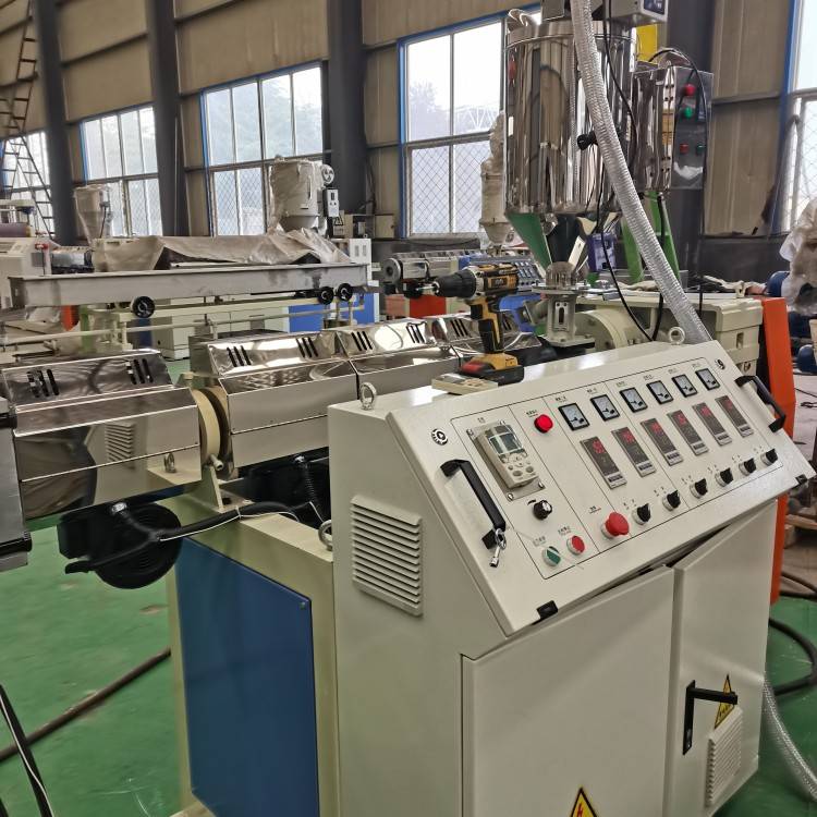 PVC-kantbåndsudstyr Tekniske parametre og konfiguration 1 Specifikation model SJ65-28/1 2 skruer diameter 65mm 3 Skrue længde-til-diameter forhold 28:1 4 Skruestruktur type PVC specialskrue 5 Tøndestruktur Tønde integreret 6 skruer, tøndemateriale 38CrMOALA 7 Skrue- og cylindernitreringsbehandling Nitreringsbehandling 8 skruer og tønde levetid er omkring 3 år 9 Hoveddrev variabel frekvens motoreffekt 18,5KW