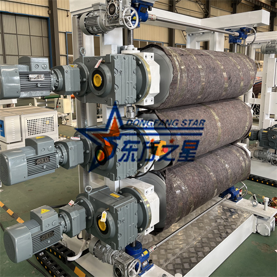 Den vigtigste del af Soft Pvc Sheet Extruder Machine Turtle Pattern Machine er den tre-valsede formningsmaskine, som har to glatte valser og en skildpaddeskalvalse i midten.Bearbejdningsprocedurerne for skildpaddeskalsvalsen omfatter: grovdrejning, dynamisk balancering, findrejning, slibning, galvanisering, gravering og finslibning. Tiden for gravering af rullen er relativt lang, så leveringscyklussen for hele udstyret er relativt lang. Producenter, der skal behandle og tilpasse skildpaddeskalsudstyr, skal bestille på forhånd.