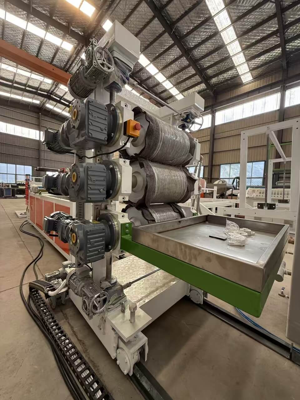 TPU/PE/PP/PS-300 Wide Sheet Extrusion Line er designet til behandling af pellets eller knuste blandinger af TPU, PE, PP og PS. Med en produktionskapacitet på **60-100 kg/t** omfatter linjen komponenter fra førende mærker som Siemens og Omron. Den har en 0,8-3 mm pladematrice, tre-valskalender og opviklingsmaskine, hvilket sikrer højkvalitets output. Udstyret opfylder strenge kvalitetsstandarder og inkluderer omfattende teknisk dokumentation for nem betjening og vedligeholdelse.